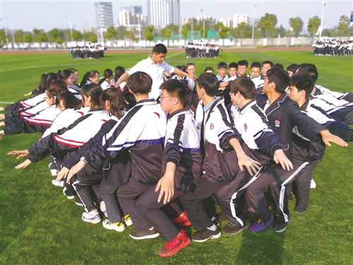 作為一所高中學校,應試教育也許是最重要的事,而徐州市二中卻把素質教育理念貫穿始終。去年新生剛入校時,學校就開展嚴格的入學教育,通過軍訓規(guī)范學生的言行,增強其自我約束力,提高學生自身素質。5月9日,學校為高一和高三年級的同學設計了勵志拓展訓練。在距離高考僅剩不到一個月的復習沖刺階段,近兩個小時的拓展訓練顯得太過奢侈,但德育處張望主任說:“我們追求的是學生們的身心健康,學校每年都會舉行體育和心理健康節(jié)。你不一定考上大學,但身心必須要是健康的。現(xiàn)在這么多孩子因為承受不住心理壓力離家出走甚至自殺的案例,我們不希望我們的孩子在這種案例上再書上一筆,所以學校舍得拿出這兩個小時的時間讓孩子進行拓展訓練。”