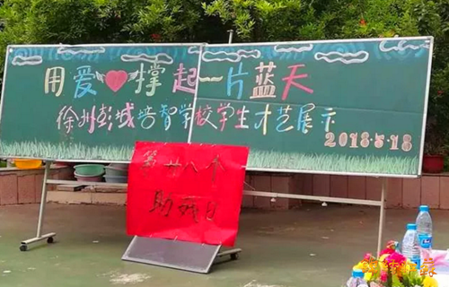 5月18日上午,徐州市培智學(xué)校舉行了以“全面建成小康社會 殘疾人一個也不能少”為主題的“全國第二十八個助殘日”活動。 當(dāng)日上午,愛心人士徐州小藝慈善中心主任郭小藝,國學(xué)老師李紅偉,徐州市著名音樂人丁培鑫,徐州琴書傳承人孫茂榮,徐州好人周曉燕, 轄區(qū)派出所所長 街道負責(zé)人,徐州日報趙衛(wèi)東主任還有 170余名師生,及家長,參加活動。