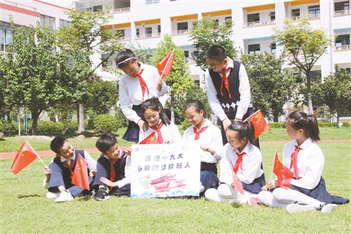 ▲隊(duì)員們開(kāi)展“喜迎十九大,爭(zhēng)做圓夢(mèng)接班人”活動(dòng)。
