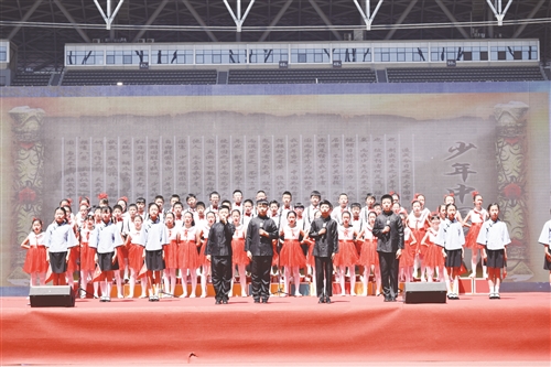 ◎本報(bào)全媒體記者 劉蘇 5月31日上午,陽(yáng)光普照,照在了徐州奧體中心,照在了潘塘中心小學(xué)數(shù)千名學(xué)生的笑臉上。這里正在進(jìn)行的是《慧心引領(lǐng)成長(zhǎng) 樂創(chuàng)點(diǎn)亮未來——徐州市潘塘中心小學(xué)2018慶六一文藝匯演暨一年級(jí)入隊(duì)儀式》,活動(dòng)設(shè)置了少先隊(duì)員入隊(duì)儀式、文藝演出和“慧創(chuàng)”教育理念發(fā)布會(huì)三個(gè)環(huán)節(jié),學(xué)校全體師生、家長(zhǎng)代表,以及徐州市體育局領(lǐng)導(dǎo)、云龍區(qū)政府和教體局領(lǐng)導(dǎo),以及書法協(xié)會(huì)民進(jìn)黨人士參加。 入隊(duì)儀式、文藝誦讀點(diǎn)燃奧體中心 雖說徐州奧體中心是家門口的大型場(chǎng)所,但是大多數(shù)學(xué)生仍沒有到過這里。面對(duì)壯觀的奧體,尤其是走進(jìn)偌大的足球場(chǎng),同學(xué)們興奮地“哇哇”贊嘆著,小腦袋不停地?fù)u來晃去左看右看。 “這里好大!”“太漂亮了!”“我們能在這里踢球就好了!”……一些來過奧體的同學(xué)不無自豪地說:“我來過這里游泳,去年我爸爸帶我來的。這里的室外游泳池里還有滑梯呢!可好玩了!” 對(duì)場(chǎng)地的新奇過去后,孩子們開始把關(guān)注點(diǎn)轉(zhuǎn)移到了場(chǎng)地四周擺放的書畫作品上,這些都是學(xué)校的同學(xué)們創(chuàng)作的書畫作品,有書法,有水彩、有水墨、有油畫、有黏土畫,每一件進(jìn)入到這場(chǎng)慶六一“童心飛揚(yáng)”書畫展的作品都可圈可點(diǎn)。大人看了都不禁驚嘆:“潘塘中心小學(xué)的孩子的想象力、創(chuàng)造力真是不得了。” 早上9:30,迎著火紅的隊(duì)旗,伴著嘹亮的隊(duì)歌聲——我們是共產(chǎn)主義接班人,繼承革命先輩的光榮傳統(tǒng),愛祖國(guó),愛人民……這場(chǎng)活動(dòng)中最重要的一環(huán)——潘塘中心小學(xué)一年級(jí)入隊(duì)儀式正式開始。 首先,潘塘中心小學(xué)辛躍武校長(zhǎng)宣讀關(guān)于一年級(jí)建隊(duì)和批準(zhǔn)新隊(duì)員入隊(duì)的決定。經(jīng)過班級(jí)申請(qǐng),潘塘中心小學(xué)少先大隊(duì)特批準(zhǔn)成立了13個(gè)中隊(duì),全校共585名孩子光榮地加入了中國(guó)少年先鋒隊(duì)。當(dāng)老隊(duì)員為新隊(duì)員戴上紅領(lǐng)巾的那一刻,孩子們臉上洋溢著甜美的微笑。在大隊(duì)長(zhǎng)的帶領(lǐng)下,新隊(duì)員們?cè)陉?duì)旗下響亮宣誓:“我熱愛中國(guó)共產(chǎn)黨,熱愛祖國(guó),熱愛人民,好好學(xué)習(xí),好好鍛煉,準(zhǔn)備著:為共產(chǎn)主義事業(yè)貢獻(xiàn)力量!” 接著,新隊(duì)員代表、老隊(duì)員代表分別作了講話,他們表示:佩戴上鮮紅的紅領(lǐng)巾,他們將銘刻隊(duì)訓(xùn),遵循隊(duì)章,時(shí)刻準(zhǔn)備著,為共產(chǎn)主義事業(yè)而奮斗。 辛躍武校長(zhǎng)表示,通過這次活動(dòng),我們深信,隊(duì)員們胸前的紅領(lǐng)巾一定能激勵(lì)他們?nèi)〉靡粋(gè)又一個(gè)進(jìn)步,他們也會(huì)用自己的實(shí)際行動(dòng),證明自己無愧于“少先隊(duì)員”這個(gè)神圣的稱號(hào)。在紅領(lǐng)巾這塊陣地上,他們定會(huì)精彩自己,感動(dòng)他人,亮麗校園! 隨后,潘塘中心小學(xué)向全體學(xué)生致以節(jié)日的祝賀,向辛勤付出的教師們表示慰問和感謝。伴隨著一首《少年!少年!》舞曲,文藝誦讀展演正式拉開帷幕,奧體中心也隨之變成了一片歡騰的海洋。一年級(jí)的《三字經(jīng)》、二年級(jí)的《笠翁對(duì)韻》、三年級(jí)的《唐詩(shī)吟唱》、四年級(jí)的《游子吟》《弟子規(guī)》,五年級(jí)的《少年中國(guó)說》,六年級(jí)的《將進(jìn)酒》,還有合唱《讀唐詩(shī)》《龍文》……這些節(jié)目充分體現(xiàn)了潘塘中心小學(xué)的閱讀特色。 “慧創(chuàng)”理念辦出家門口的好學(xué)校 這次活動(dòng),從策劃到布展全體教職工都付出了很大的心血。在入隊(duì)儀式后,還播放了用老師們平時(shí)積累的素材制作而成的一年級(jí)學(xué)生成長(zhǎng)記錄片,這樣的小細(xì)節(jié)讓在場(chǎng)的家長(zhǎng)和孩子都非常感動(dòng)。他們?yōu)楹⒆佑羞@么認(rèn)真負(fù)責(zé)的老師感到欣慰,更為在偏離城市中心的家門口就有這樣的好學(xué)校感到高興。 潘塘中心小學(xué),去年起隸屬于徐師一附小教育集團(tuán)。2014年9月云龍區(qū)成立了5個(gè)教育集團(tuán),打造集團(tuán)化辦學(xué)。所謂集團(tuán)化辦學(xué),就是將一所名校和若干所學(xué)校組成學(xué)校共同體(名校集團(tuán)),以名校為龍頭,在教育理念、學(xué)校管理、教育科研、教育評(píng)價(jià)等方面統(tǒng)一管理,實(shí)現(xiàn)優(yōu)質(zhì)教育資源共享。 “集團(tuán)化辦學(xué)不是簡(jiǎn)單地加一塊招牌,要幫助一所學(xué)校實(shí)現(xiàn)‘新生’,需要總校原有先進(jìn)管理理念、文化的移植和再生長(zhǎng),必須付出艱苦的努力。”潘塘中心小學(xué)校長(zhǎng)辛躍武說,“集團(tuán)分校要經(jīng)歷從模仿、生長(zhǎng)、融合,最后到創(chuàng)生的過程。”潘塘中學(xué)小學(xué)不是對(duì)徐師一附小品牌的簡(jiǎn)單復(fù)制,而是在吸納總校優(yōu)秀教育文化的基礎(chǔ)上開出更絢麗的花朵。 在當(dāng)天的活動(dòng)上,學(xué)校還進(jìn)行了“慧創(chuàng)”教育理