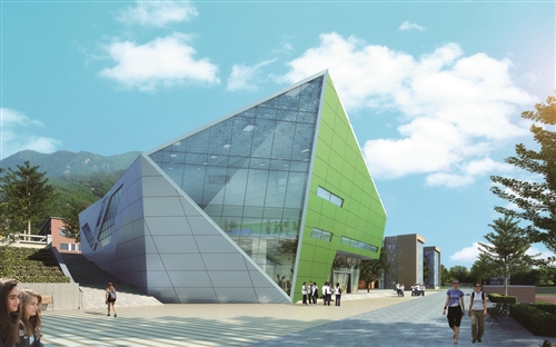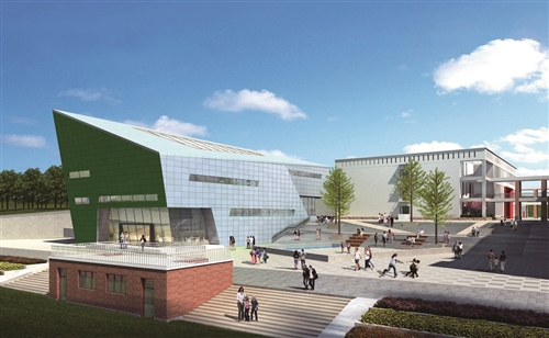 張超告訴記者,當(dāng)靈感由此得出后,他們很快就確定了“石頭”的方案,并以其為概念確定了藝體樓棱角分明的建筑造型,確定了主體建筑與山體相融合的設(shè)計(jì)。因?yàn)橐郎蕉ǎ瑢W(xué)校有著山的雄渾;因?yàn)榘鴮W(xué),學(xué)生則會(huì)擁有水的輕靈。