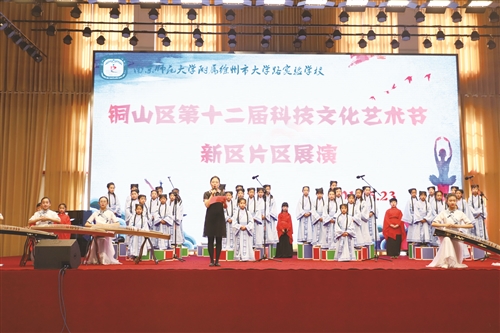 5月23日,徐州市大學路實驗學校的校園里如同初夏的陽光一樣燦爛,銅山區(qū)第十二屆科技文化藝術節(jié)新區(qū)片區(qū)展演在這里隆重舉行。