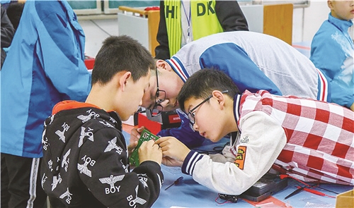 參加電子百拼項目的孩子們則給人留下了更為深刻的印象。在這里,未來的科學家們個個有模有樣——思索、組裝、再裝,直到最佳方案。他們爭分奪秒、手腦并用,不斷刷新著最高紀錄,小小年紀就已有了大國工匠之精神。雨中,航模組的孩子們個個神采飛揚、摩拳擦掌:你鷂子翻身,我直沖云霄,個個都似八仙過海各顯神通。