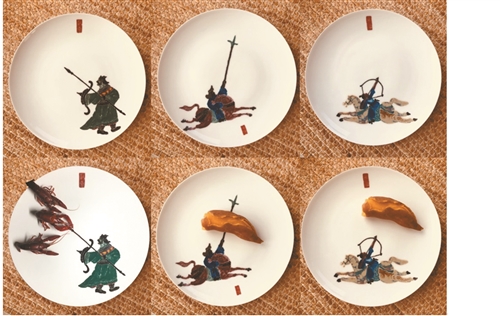 在江蘇師大美術(shù)館舉行的成果匯報(bào)展上,100多件學(xué)員作品將漢畫像圖形與陶瓷、剪紙、版畫、水墨、動(dòng)畫等新媒介巧妙結(jié)合,以漢畫像圖形為基礎(chǔ),用語義轉(zhuǎn)換的現(xiàn)代構(gòu)形手段呈現(xiàn)漢畫像藝術(shù)與現(xiàn)實(shí)生活、生存狀態(tài)及當(dāng)代審美語境的關(guān)系,揭示漢畫像藝術(shù)的核心價(jià)值,令人耳目一新。其中的一組漢畫像水墨小品將漢畫像石中的動(dòng)物圖像單獨(dú)抽離出來,兼具漢畫像藝術(shù)的“金石味”與水墨交融形成的“墨韻”;繪有刺秦、射獵、車馬出行等漢畫像圖案的陶瓷盤中,上方印章和下方人物形成一個(gè)個(gè)獨(dú)立的裝飾畫,通過放置不同的食物還可以表現(xiàn)出新的樣式和意義。