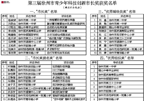 附件:第三屆徐州市青少年科技創(chuàng)新市長獎獲獎名單