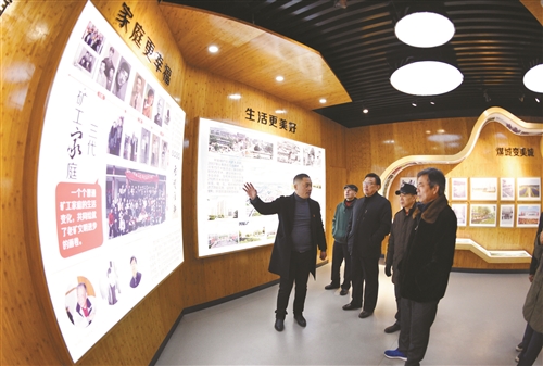 演員在老礦街道五號(hào)井社區(qū)文化館參觀。