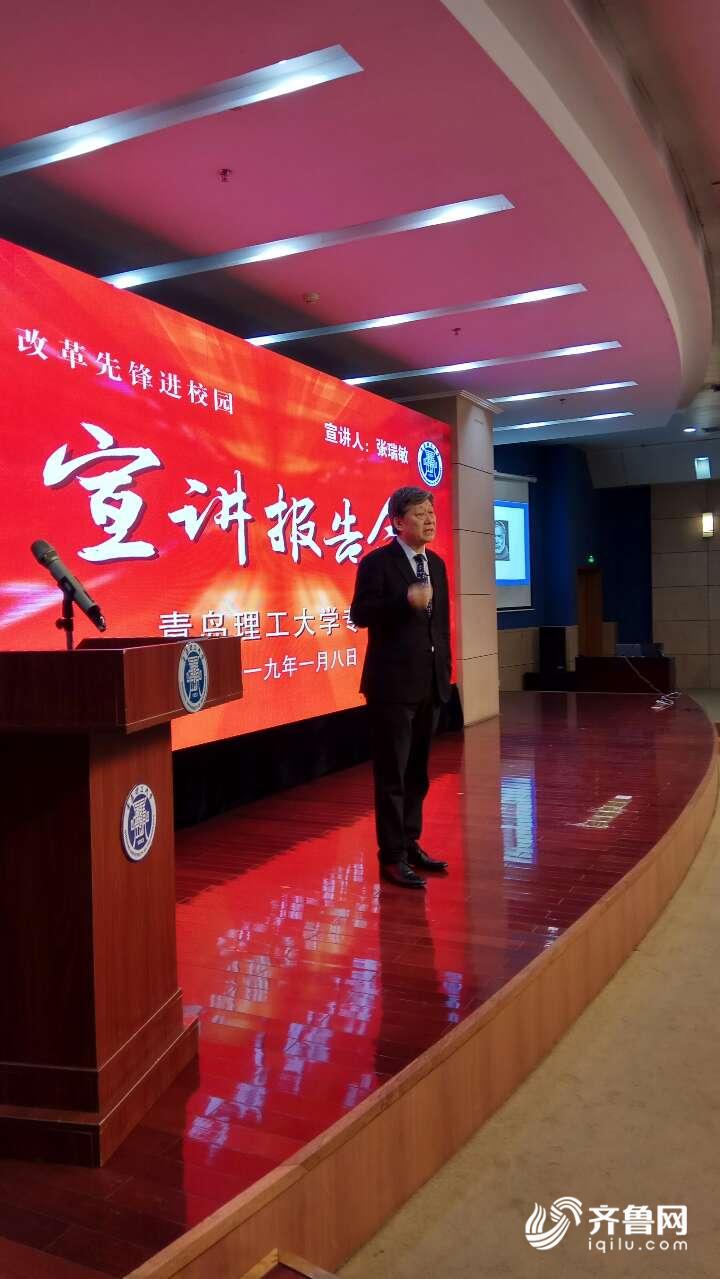 齊魯網(wǎng)1月8日訊 今天上午,由中宣部、教育部、共青團(tuán)中央共同組織開(kāi)展的改革先鋒進(jìn)校園宣講活動(dòng)走進(jìn)了青島理工大學(xué),張瑞敏以創(chuàng)業(yè)創(chuàng)新為題給在校師生做了報(bào)告,并進(jìn)行面對(duì)面交流。
