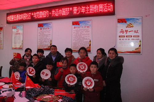 為進一步弘揚和培育以愛國主義為核心的偉大民族精神,引導(dǎo)青少年從小聽黨的話、跟黨走,激發(fā)青少年的愛國情懷,鼓勵他們?yōu)閷崿F(xiàn)中華民族偉大復(fù)興的“中國夢”而發(fā)憤圖強, 2月14日,豐縣中陽里街道和豐園社區(qū)開展了“與黨徽相約——共話中國夢”主題活動。20余名青少年參加了此次活動。