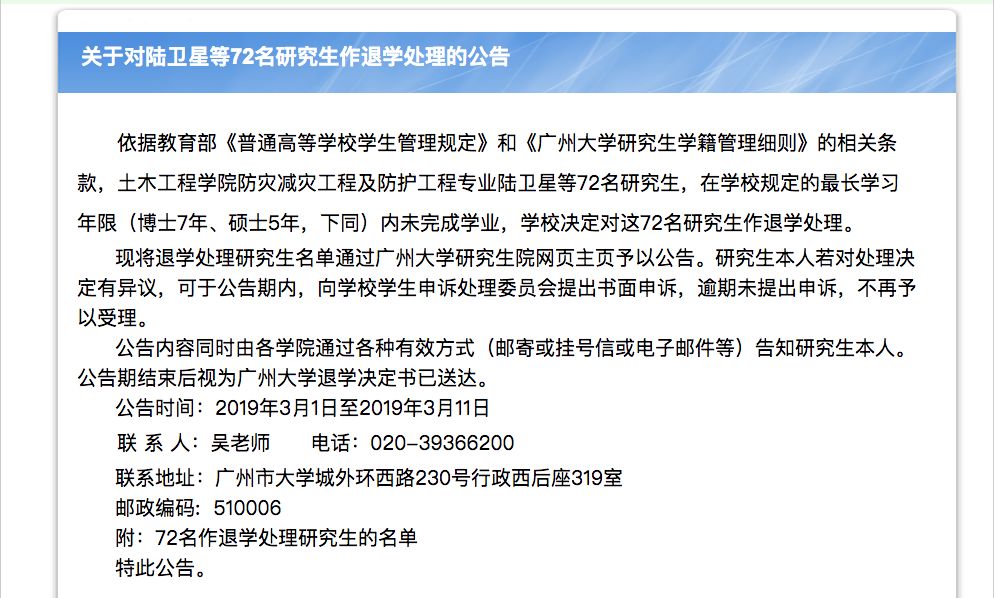 對(duì)于“超出最長(zhǎng)學(xué)習(xí)年限且未提出結(jié)業(yè)申請(qǐng)”的2012級(jí)博士研究生(含留學(xué)生)和2014級(jí)碩士研究生(含留學(xué)生),擬按學(xué)校相關(guān)規(guī)定的要求進(jìn)行退學(xué)處理。