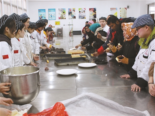 為保證學生100%就業(yè),真正把“政府政策推動、企業(yè)參與辦學、學校落實培訓”三位一體,把“政校企合作、產(chǎn)教融合培養(yǎng)高素質(zhì)技能型人才”落到實處,學校重視校企合作、產(chǎn)教融合,注重與國內(nèi)外兄弟院校深度攜手,與知名企業(yè)資源共享。目前,不僅有企業(yè)訂單班、定向委培班、新型學徒制,有“2+1”和“2.5+0.5”多種辦學模式,而且和德國IB公司率先在汽車維修、電氣自動化設備安裝與維修兩個專業(yè)開展國際合作辦學,與中德諾浩合作創(chuàng)新型“新能源汽車”專業(yè)人才培養(yǎng)項目,與俄羅斯烏拉爾交通大學啟動本科合作辦學……學院朱誠心教授工作室成員多次受邀赴澳大利亞、美國等國家參加飲食文化交流活動,其精湛的烹飪技藝廣受好評;與澳大利亞格里菲斯大學、中國礦業(yè)大學合作,在學校彭祖養(yǎng)生宴校外實訓推廣基地和商貿(mào)旅游學院成立了格里菲斯大學旅游孔子學院“中國文化實踐基地”。