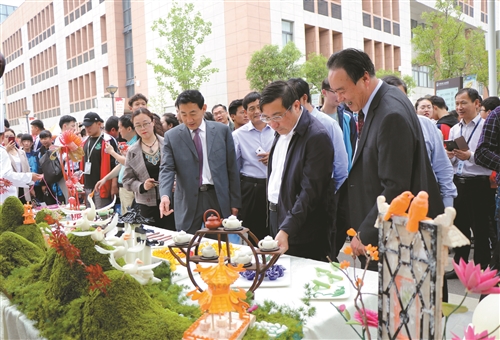 開幕式當(dāng)天,該校學(xué)生向與會嘉賓展示了他們的作品。商貿(mào)學(xué)院展示的是能削80—100米長的蘿卜絲和養(yǎng)生宴,建筑工程學(xué)院展示的是三維設(shè)計效果的室內(nèi)設(shè)計,機(jī)械工程學(xué)院展示了3D打印技術(shù),工藝美術(shù)學(xué)院則用雕刻吸引與會嘉賓……一邊走,一邊看,贊聲不斷。