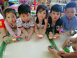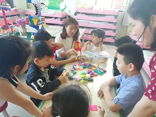 小小的粘土,在孩子們的手中變換成各種形狀,有紅色圓柱體形狀的、有綠色餃子形狀的、有黃色漢堡形狀的、有棕色手環(huán)形狀的…在孩子們的心中,端午節(jié)就是五彩的,小小的粽子也代表了孩子們一顆顆純真的心。孩子們玩得不亦樂乎,相信此次活動也能留給孩子們一次美好的回憶。