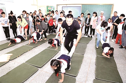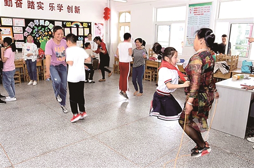 “爸爸,我們不要放棄!”“媽媽,我們一起加油!”5月31日上午,在永安街小學(xué)三(1)班,一場(chǎng)緊張的親子跳比賽正在進(jìn)行,家長(zhǎng)與孩子們團(tuán)結(jié)合作、齊心協(xié)力,共同贏取獎(jiǎng)勵(lì)的印章,興奮的吶喊聲與開(kāi)心的笑聲一直在學(xué)校里回響……