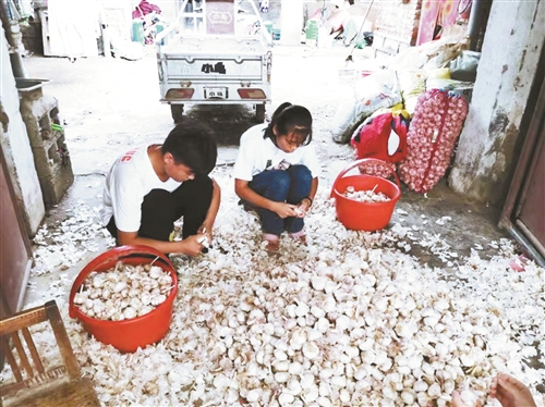 周格格和哥哥在一起剝蒜。 徐州日?qǐng)?bào)全媒體記者 肖慧 攝
