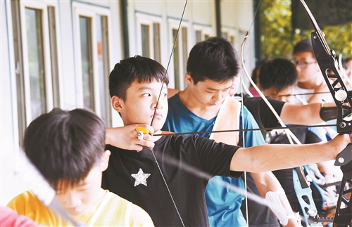 8月20日下午,在體育中心的體操館和射箭館,記者看到,從三四歲的小娃娃到十幾歲的初中生,孩子們都在用毅力來(lái)對(duì)抗悶熱的天氣。