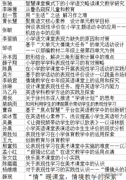 在省前瞻項(xiàng)目的推進(jìn)中,教師們?cè)絹碓蕉嗟亻喿x、思考、研討和實(shí)踐。這個(gè)過程促進(jìn)了教師自身的成長。老師們?cè)陧?xiàng)目宏觀的研究中開始萌發(fā)自己的想法,在推進(jìn)的過程中,他們即將成長為自己所承擔(dān)的研究任務(wù)方面的專家。恰逢區(qū)名師項(xiàng)目工作室開始申報(bào),星光小學(xué)十多名教師自發(fā)組建團(tuán)隊(duì),遞交申請(qǐng),申報(bào)項(xiàng)目都是發(fā)端于表現(xiàn)性學(xué)習(xí)課堂樣態(tài)建設(shè)的某個(gè)要素。他們的研究將是該校前瞻項(xiàng)目的進(jìn)一步延展。