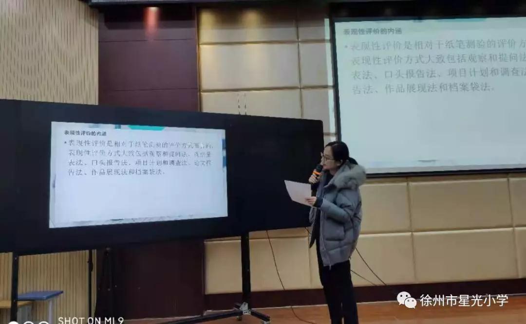 來自英語組的馬乙丹老師和大家分享了自己近期通過閱讀對(duì)表現(xiàn)性評(píng)價(jià)的一些認(rèn)識(shí)。馬老師認(rèn)為:“表現(xiàn)性評(píng)價(jià)讓學(xué)生在真實(shí)或模擬的生活環(huán)境中,運(yùn)用先前獲得的知識(shí)解決某個(gè)新問題或創(chuàng)造某種東西,以考查學(xué)生知識(shí)與技能的掌握程度,以及實(shí)踐、問題解決、交流合作和批判性思考等多種復(fù)雜能力的發(fā)展?fàn)顩r”。