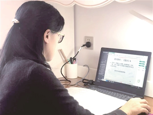 徐州一中黨員教師在上直播課。