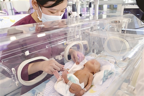 在這個(gè)頂著多個(gè)“超級(jí)”稱號(hào)的寶寶身上,生命的脆弱一眼可見,觸目驚心。拳頭約有成人指甲大小、手臂不及成人一根手指粗,全身皮膚薄如蟬翼,臉龐青紫,沒(méi)有呼吸,心跳微弱,仿佛一陣風(fēng)就能帶走他的生命。