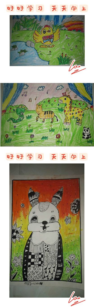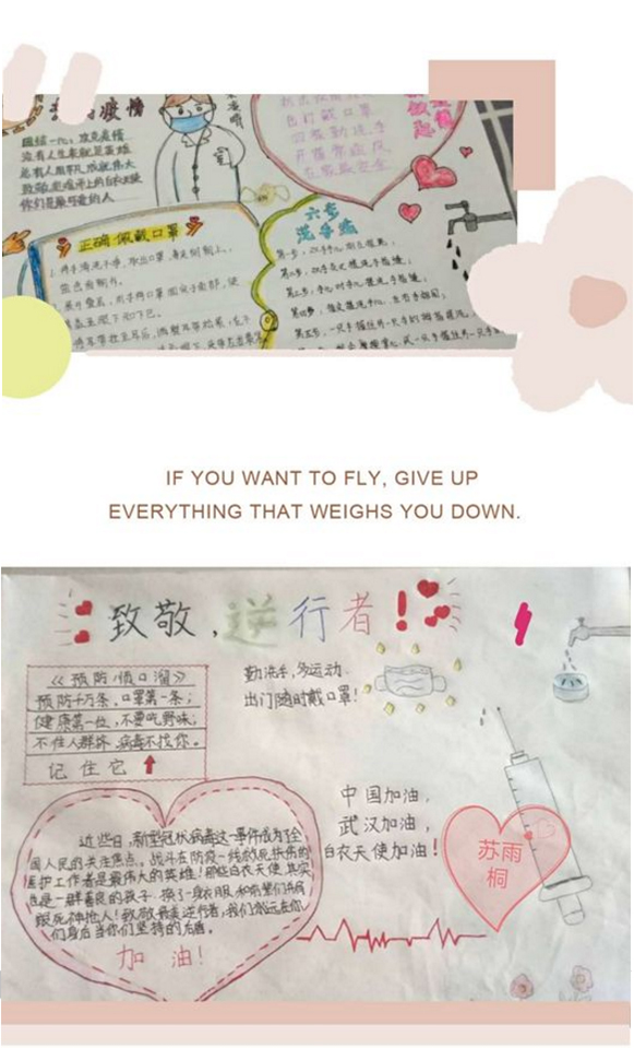 同學(xué)們用遒勁有力的書法作品、抗擊疫情的手抄報(bào)和熱情洋溢的圖畫來(lái)表達(dá)自己的愛(ài)國(guó)之情。