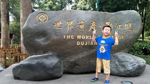 到一個景區(qū)旅游,小鵬瑄總要拍一張帶標(biāo)志性文字或景物的照片。因?yàn)闋敔敻嬖V他,祖國幅員遼闊,有的地方一生可能就去一次。