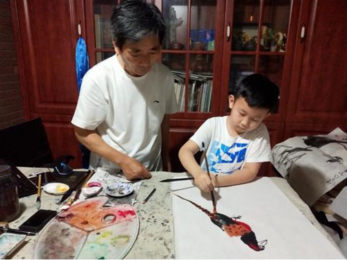 他在家教小鵬瑄習(xí)字畫畫。尹鵬瑄也極為聰慧,多次參加兒童書畫展,曾獲徐州“感恩父愛兒童畫展”一等獎、徐州市首屆青少年家風(fēng)家訓(xùn)書畫大賽銀獎。