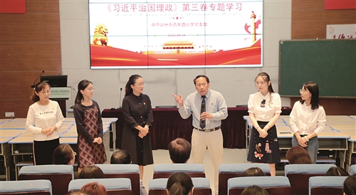 活動中,學(xué)校還特別邀請了徐州工程學(xué)院宣傳部副部長周海航,從準(zhǔn)確把握《習(xí)近平談治國理政》第三卷的主要內(nèi)容、領(lǐng)會其精神實(shí)質(zhì),深刻理解《習(xí)近平談治國理政》第三卷貫穿的馬克思主義立場觀點(diǎn)方法、在實(shí)踐中學(xué)懂弄通做實(shí)等方面進(jìn)行了系統(tǒng)闡釋和深入解讀。青年路小學(xué)校長劉婷表示:“今后,我們將繼續(xù)不忘初心,勇于前進(jìn),不斷創(chuàng)新教學(xué)方法,更新教育觀念,在知行合一、學(xué)以致用上下功夫,真正用黨的創(chuàng)新理論武裝頭腦、指導(dǎo)實(shí)踐、推動工作。努力把學(xué)生培養(yǎng)成為具有國學(xué)功底、家國情懷、國際視野的優(yōu)秀人才。”