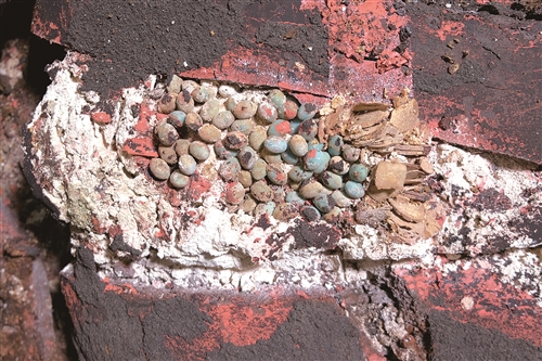 揭示出東漢早中期諸侯王墓的結(jié)構(gòu)及建筑方法,明確了東漢時(shí)期各墓室名稱功用,首次發(fā)現(xiàn)在大型磚室墓中以鋪設(shè)木板作橫梁支撐的砌筑券頂方法,表現(xiàn)出大型磚室墓券頂技術(shù)初始階段的特征,二號(hào)墓還在墓室石墻上鋪設(shè)木板作為券頂施工平臺(tái),施工完成后木板經(jīng)過裝修成為墓室裝飾的一部分,墓內(nèi)前室、后室和回廊券磚上分別發(fā)現(xiàn)“前堂”“官(宮)室”“徼道”等文字,明確了在漢代各墓室的名稱功用;