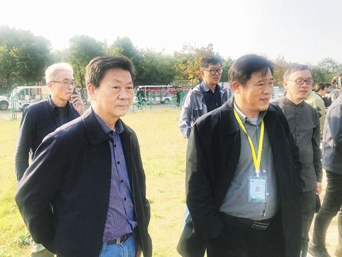 張敬國(左一)陪同考古界專家考察凌家灘遺址