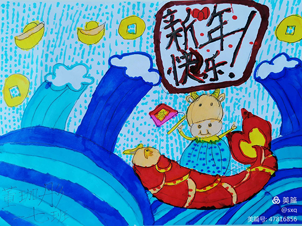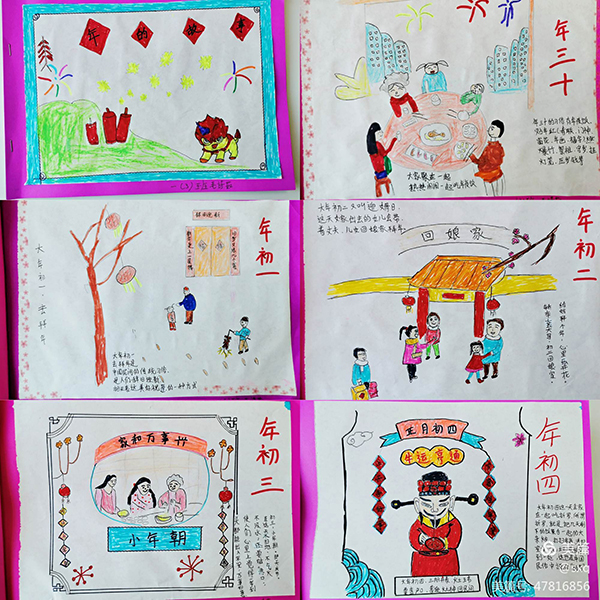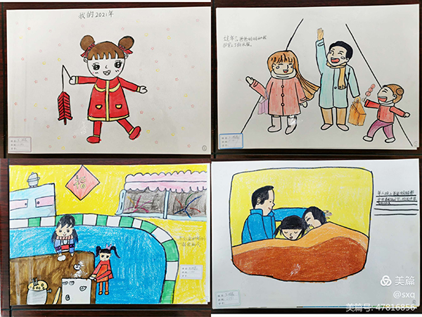 “爆竹聲中一歲除,春風(fēng)送暖入屠蘇”,徐州市星光小學(xué)榮盛城分校語文組為了豐富學(xué)生們的寒假生活, 過一個(gè)別樣的新年,給一二年級的同學(xué)布置了特色的假期作業(yè)——小手畫新年。