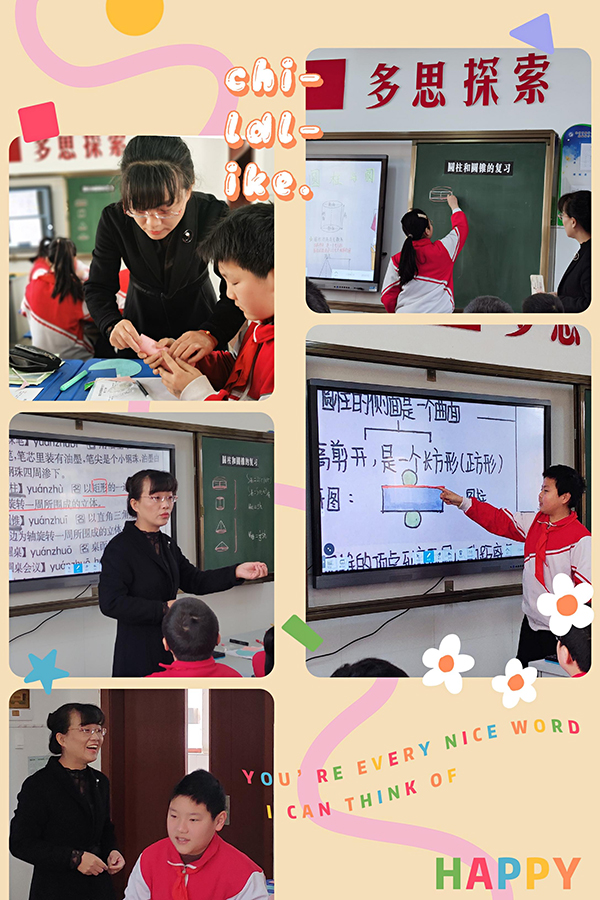 第一節(jié)課,徐州星光教育集團總校長朱霄、星光榮盛城分校執(zhí)行校長曹克凡、泉山區(qū)教研室教研員劉保新,陪同高主任一行走進六(3)班教室,王盈盈老師正帶領學生們進行《圓柱和圓錐的復習》。
