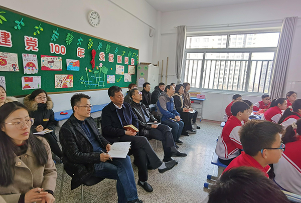 第三節(jié)課大家齊聚會議室,聆聽高青主任一行的精準指導;鸹ㄖ袑W胡光芹校長、周廷達副校長也全程參與座談。