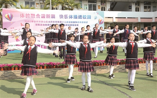 抓住體教改革春風(fēng),光榮教育集團(tuán)先行先試,積極探索體教融合新模式,研究決定將少年兒童體適能暨快樂體操項(xiàng)目確立為該校“一校一品”體育特色項(xiàng)目。