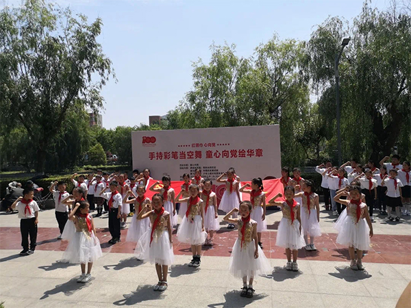 百名兒童在百米長(zhǎng)卷上作畫,畫出對(duì)黨的憧憬,對(duì)黨的熱愛。孩子們的小手是天使之翼,能用畫筆描繪——我愛祖國(guó),我愛黨;孩子們的語言是天籟之聲,能用真情告白——我愛祖國(guó),我愛黨!