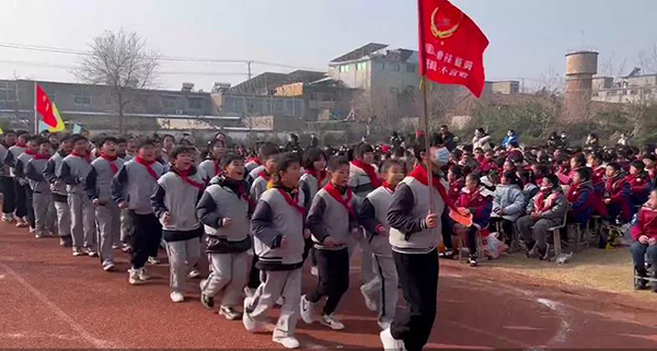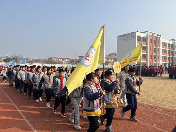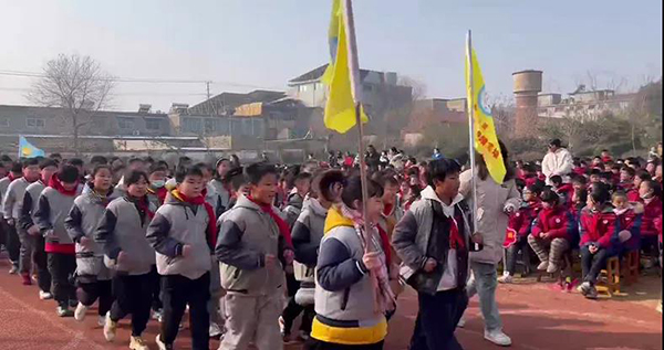 12月22日上午九時(shí)三十分,城崗小學(xué)體育節(jié)啟動(dòng)儀式。踏著有序的節(jié)拍,鳴響鏗鏘的樂章,伴著激揚(yáng)的解說,國旗隊(duì)、運(yùn)動(dòng)員方隊(duì)邁著矯健的步伐,依次入場(chǎng)。