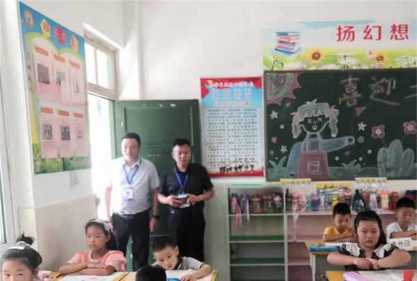 黃淮網(wǎng)(婁爽) 新學(xué)期,新征程,新希望,新氣象。為切實(shí)保證開學(xué)初學(xué)校各項(xiàng)工作扎實(shí)有序開展,2022年9月6日上午,銅山區(qū)教育局督導(dǎo)組楊峰副局長和董維陽科長在三堡小學(xué)中心校王洪麗主任的陪同下,來到三堡實(shí)小教育集團(tuán)周莊校區(qū)進(jìn)行開學(xué)工作督導(dǎo)檢查,三堡實(shí)小周校長隨同檢查。