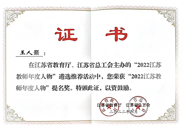 徐醫(yī)附院黨委書記王人顥教授 榮獲“2022江蘇教師年度人物”提名獎(jiǎng)