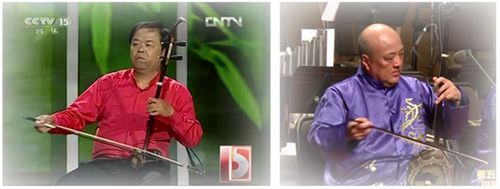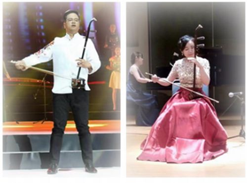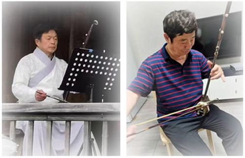 ▲39 左:邢璐在演奏《賽馬》;右:林耀板胡獨(dú)奏《賀喜》。