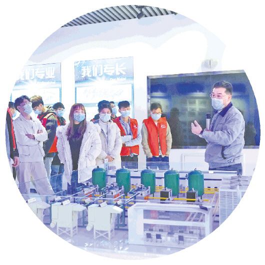 山東嘉富自動(dòng)化科技有限公司工作人員正在為山東理工大學(xué)的學(xué)生講解。 (趙豐 張春宇 報(bào)道)