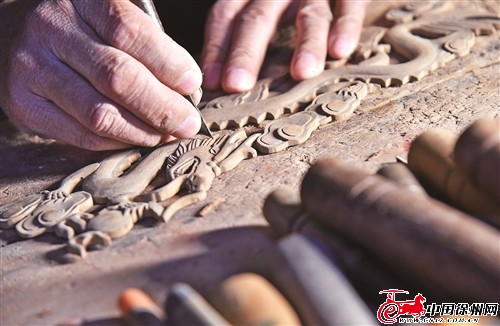 郝敬春精雕細刻,制作沛筑的紋飾。