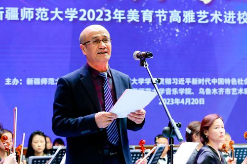 吾滿江·艾力為活動致辭,他表示,一直以來,我校始終發(fā)揮辦學優(yōu)勢,堅持以高尚精神塑造人、以優(yōu)秀作品鼓舞人的美育使命任務,積極開展以美育節(jié)高雅藝術進校園為代表的美育特色“六個一”活動,激發(fā)廣大師生為實現(xiàn)中華民族偉大復興中國夢而奮斗的激情和力量。在全校上下深入開展學習貫徹習近平新時代中國特色社會主義思想主題教育之際,作為主題教育的一次學習實踐活動,此次演出也將為學校全面落實主題教育總要求,有機結(jié)合特色,豐富學習形式,不斷把主題教育引向深入做出有益探索。