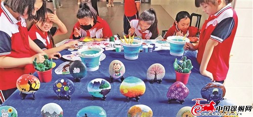 沛縣五段中心小學(xué)孩子們進(jìn)行石頭畫創(chuàng)作。