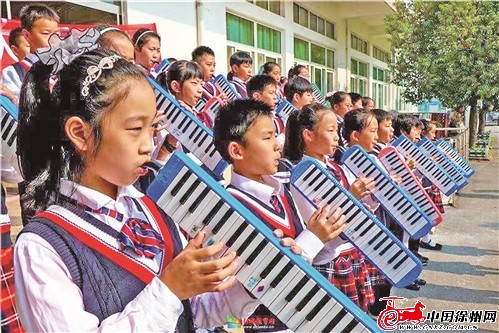 “學(xué)校在藝術(shù)特色項(xiàng)目建設(shè)中,不斷充實(shí)器樂文化內(nèi)涵。”詹輝說,在各級政府和社會各界支持幫助下,學(xué)校先后投入170萬元打造特色文化長廊、器樂特色文化場館;投入40萬元用于特色器樂、教學(xué)器材的購置、維修以及音樂教師培訓(xùn)等,舞蹈室、美術(shù)教室及教學(xué)設(shè)施器材較完備,學(xué)校美育資源不斷豐富。學(xué)校結(jié)合辦學(xué)特色積極開發(fā)的美育課程,既讓學(xué)生接受了美的熏陶,也培養(yǎng)了學(xué)生的鄉(xiāng)土情懷。