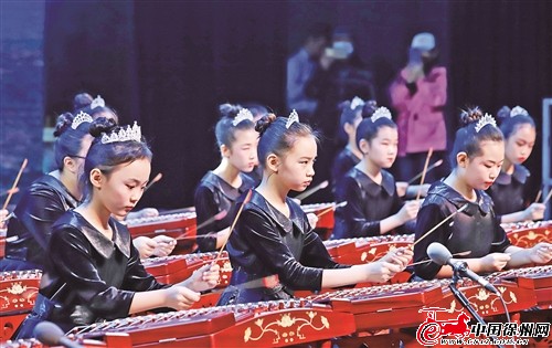 泉山區(qū)星光小學(xué)學(xué)生表演揚(yáng)琴。