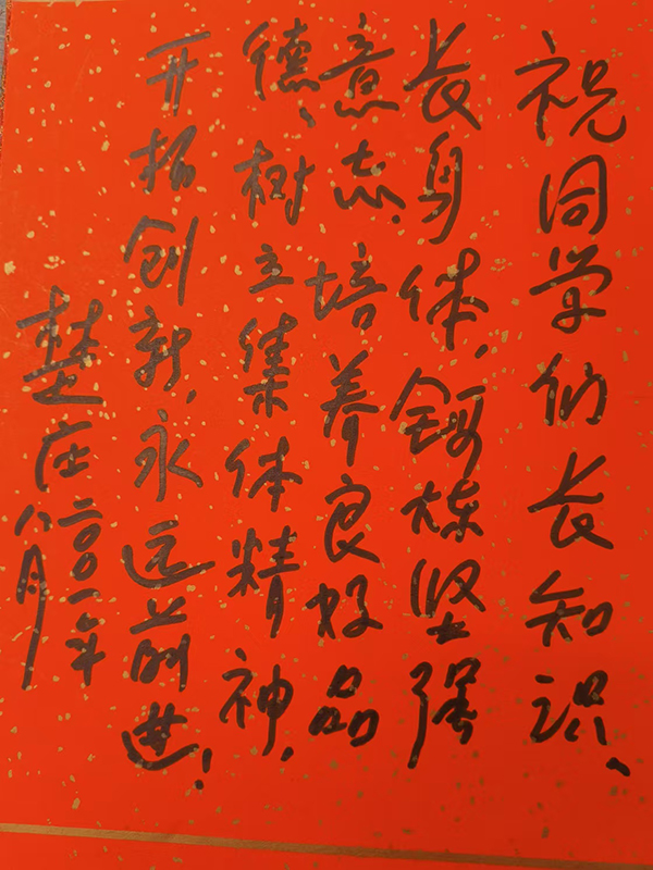 那年7 月2日,小海燕記者團(tuán)舉辦“情系北京”夏令營(yíng),再一次來(lái)到北京,受到民進(jìn)中央副主席楚莊的接見(jiàn),在寬敞的民進(jìn)中央新址的大會(huì)議室,楚老向小記者們講述民進(jìn)中央的發(fā)展史和民主黨派參政議政的作用以及對(duì)社會(huì)的貢獻(xiàn),楚老接受小記者采訪,與小記者互動(dòng)交流,在冰心老人的畫(huà)像前與楚爺爺合影留念,分享快樂(lè)。楚老為小記者團(tuán)題寫(xiě)了:“祝同學(xué)們長(zhǎng)知識(shí)、長(zhǎng)身體,鍛煉堅(jiān)強(qiáng)意志,培養(yǎng)良好品德,樹(shù)立集體精神,開(kāi)拓創(chuàng)新,永遠(yuǎn)前進(jìn)!”的題詞,并請(qǐng)小記者們參觀了民進(jìn)中央會(huì)史展覽。