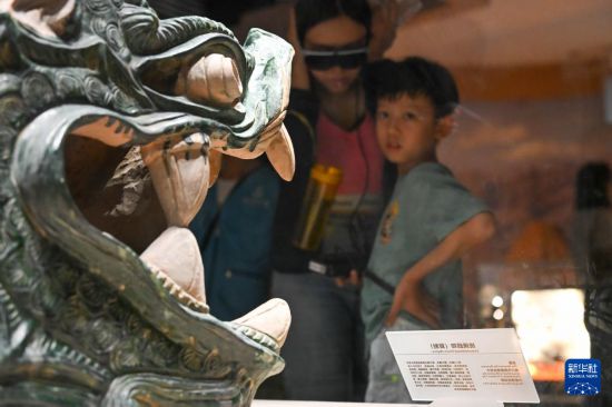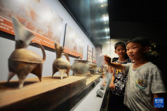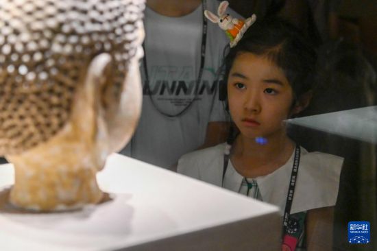 7月27日,小朋友在寧夏博物館西夏陵展區(qū)參觀。