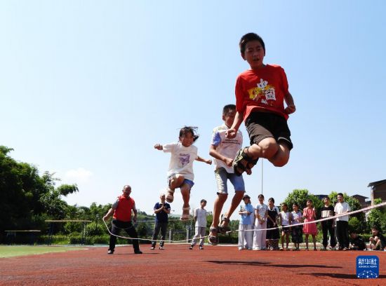7月27日,在四川省達(dá)州市達(dá)川區(qū)大堰鎮(zhèn)中心學(xué)校,學(xué)生們在跳繩。