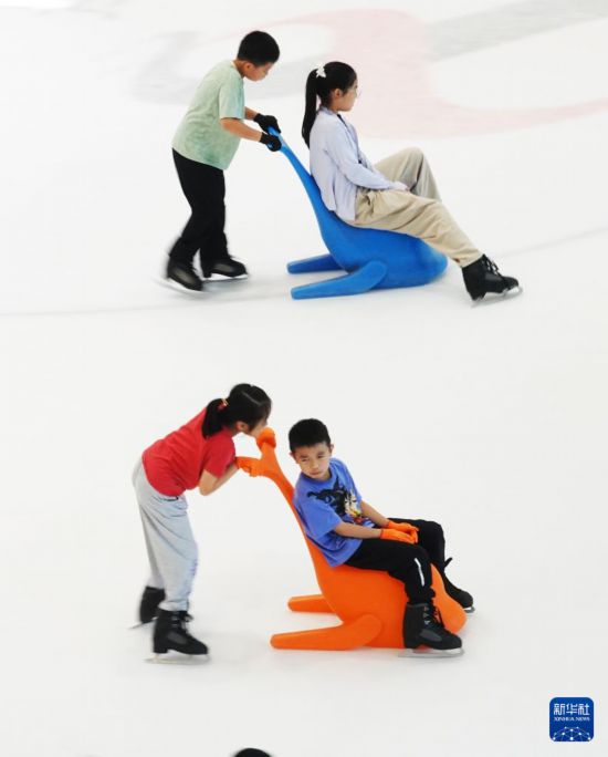 7月27日,小朋友在廣西南寧市一家室內(nèi)滑冰場學(xué)習(xí)滑冰。