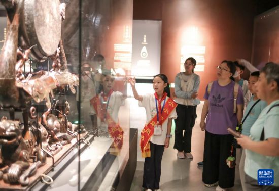 7月27日,在湖北省博物館,小學(xué)生講解員為觀眾介紹展覽。