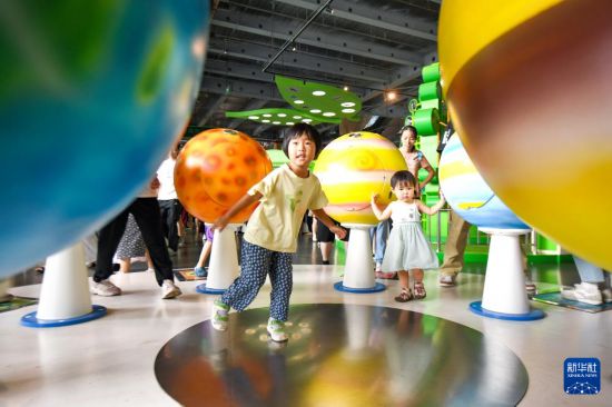 7月27日,小朋友在南京科技館參觀體驗(yàn)。